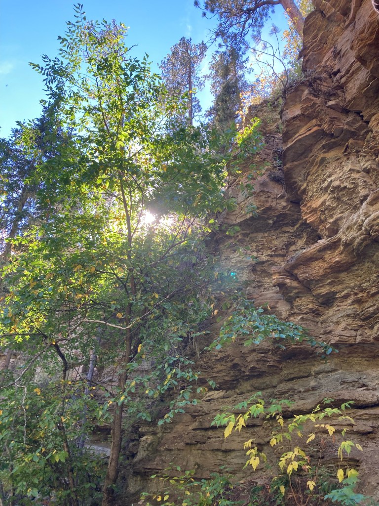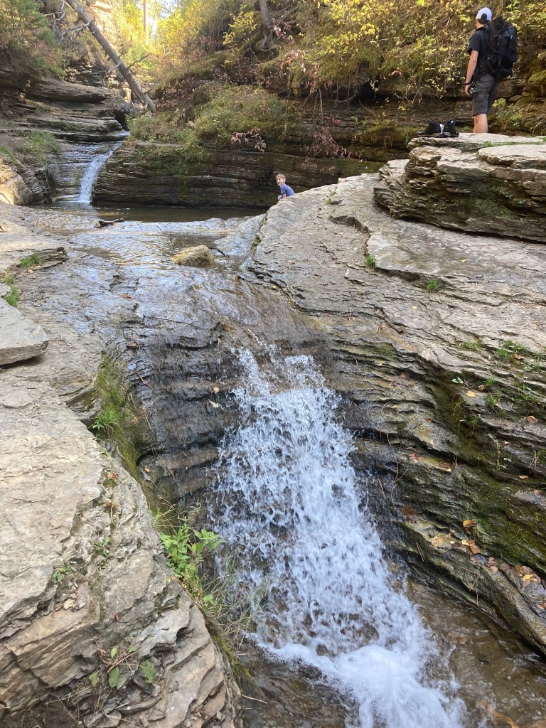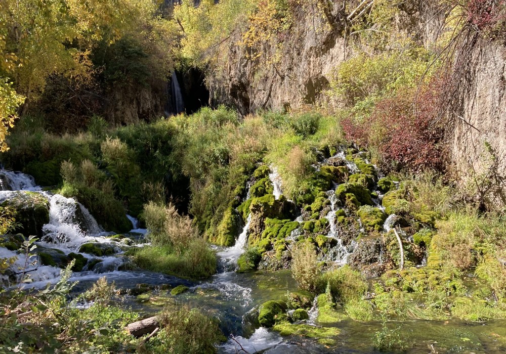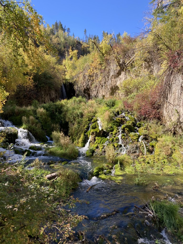 Another one of the trails we hiked was the Devil’s Bathtub trail. Devil’s Bathtub is a moderately challenging 1.6 mile trail that is also located in Spearfish. The trail starts at a pullout off the road, and there are no big indicators that you are at the right place until you hit the trailhead, a little ways ahead. When you first start hiking it is fairly easy, and most of the challenge is in the many water crossings on the trail. It follows the stream up through a beautiful forest, and some epic hills, until you finally reach the infamous bathtub. The Devil’s Bathtub is a natural waterslide, carved into the rock by the running water. I was hesitant to slide down, due to my dislike for cold water, but I told my brother that if he did it I would. After he completed his slide, and came out of the water shivering like crazy, I began my trudge to the dreaded slide. Stepping down into the hollow I was shocked by the freezing cold water, but, despite my better judgement, down I slid. It was awesome. Even though it was cold, it was worth it. I even went down again. I would highly recommend going to Devil’s Bathtub on your next trip to South Dakota. I would also recommend packing a change of clothes. (A necessity I happened to overlook.) If you are looking into hiking this trail more info can be found here.